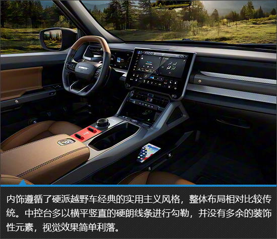 Jeep Recon的内饰秉持着实用主义,以规整布局搭配双屏交互系统,兼顾了操作便利性与科技感。耐磨防水的材质非常符合其硬派越野车的定位,虽然乘坐空间中规中矩,并无亮眼之处,但是车内强大的储物能力确实很有吸引力。无论是应对日常家用场景还是装载大量的户外装备,都能够游刃有余。